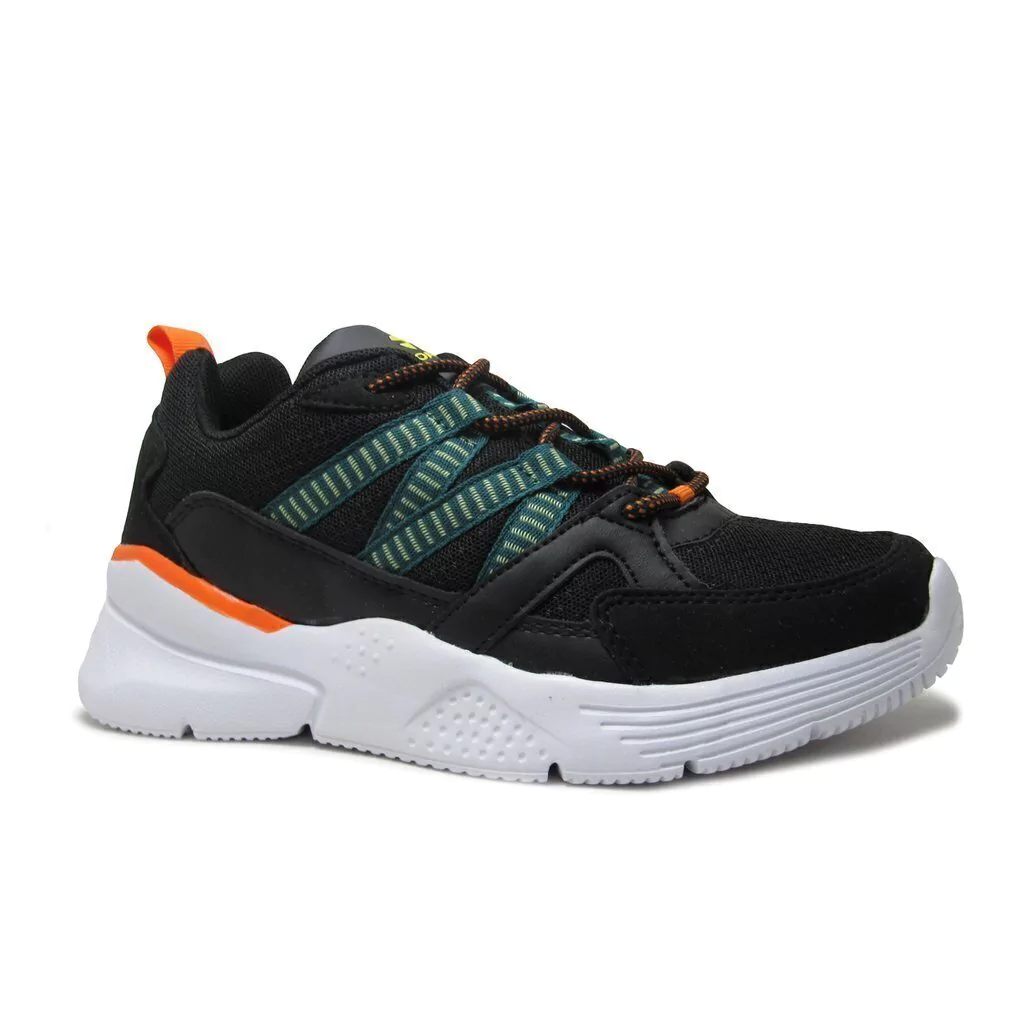CAPELLADA: de mesh con refuerzos en cuero sintético y descarne. Incorporamos detalles de diseño de calzados outdoor como cordones redondos bicolor y cintas laterales.
